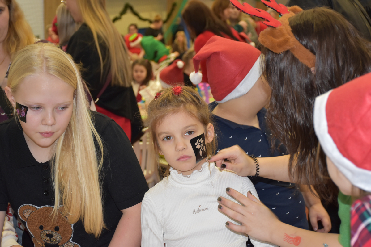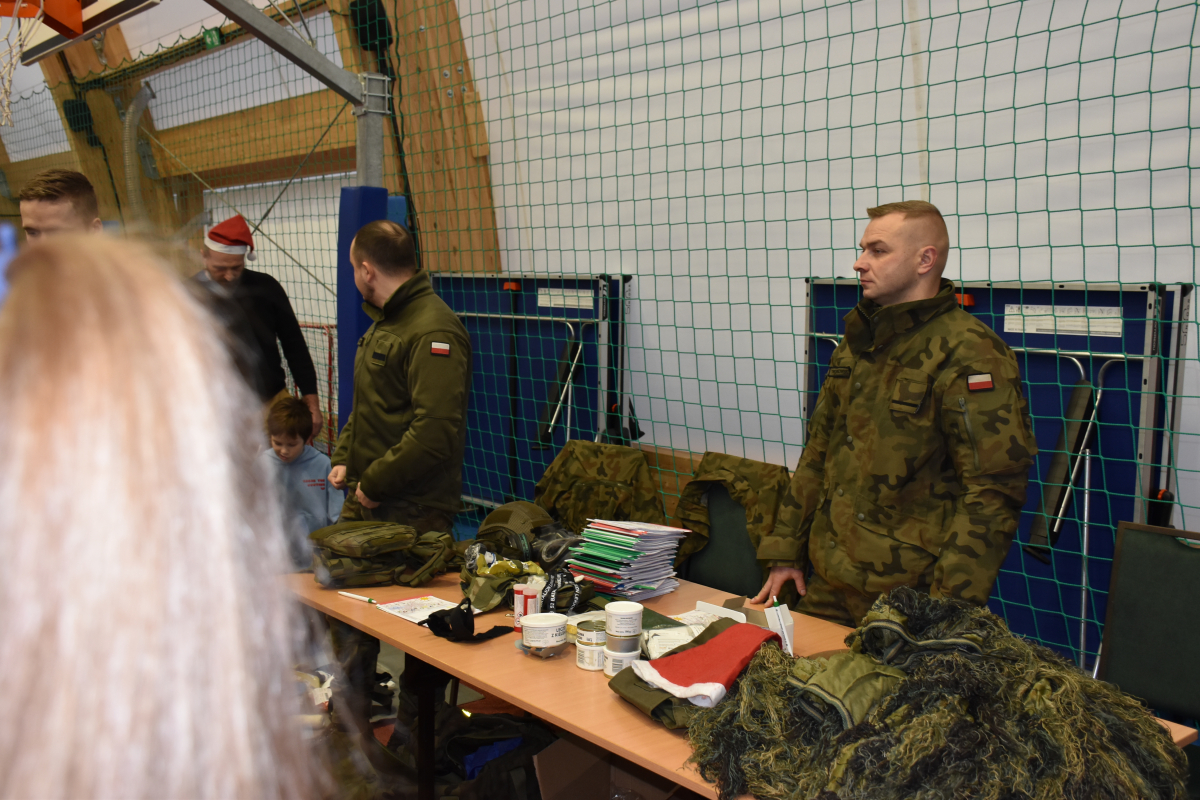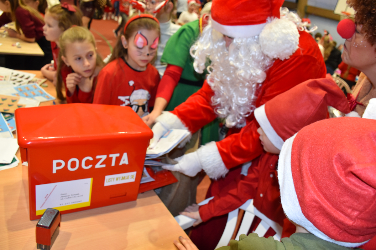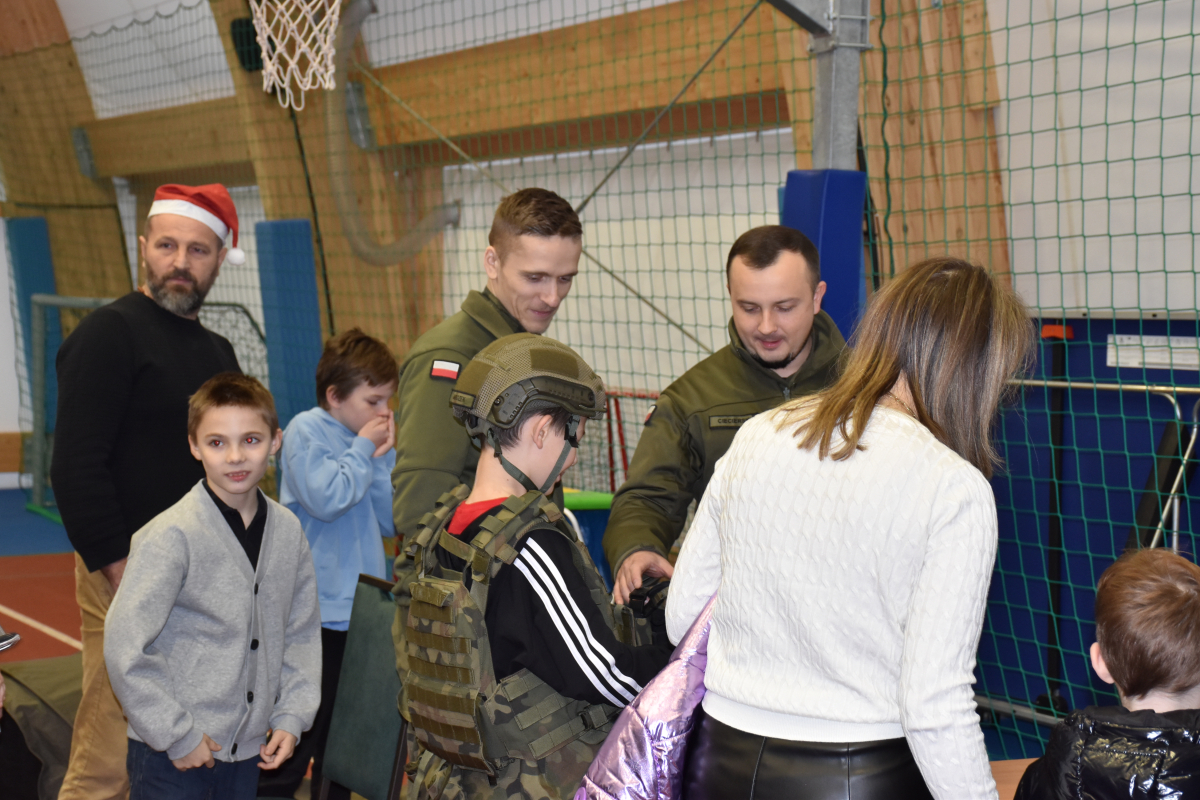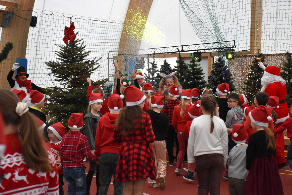 Po przedstawieniu hala zamieniła się w świąteczne miasteczko pełne aktywności. Dzieci dekorowały pierniki, tworzyły własne ozdoby choinkowe, malowały twarze i robiły brokatowe tatuaże. Nie zabrakło także pisania listów do Świętego Mikołaja – tym bardziej wyjątkowego, że wszystkie trafiały do prawdziwej czerwonej skrzynki Poczty Polskiej. Ogromnym zainteresowaniem cieszyło się stoisko przygotowane przez żołnierzy 52. Batalionu Lekkiej Piechoty w Komorowie, gdzie najmłodsi mogli poznać podstawy pierwszej pomocy oraz obejrzeć sprzęt wojskowy. Każde dziecko mogło również zrobić sobie zdjęcie z Mikołajem i otrzymać świąteczną paczkę od elfów.