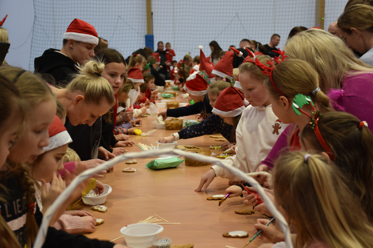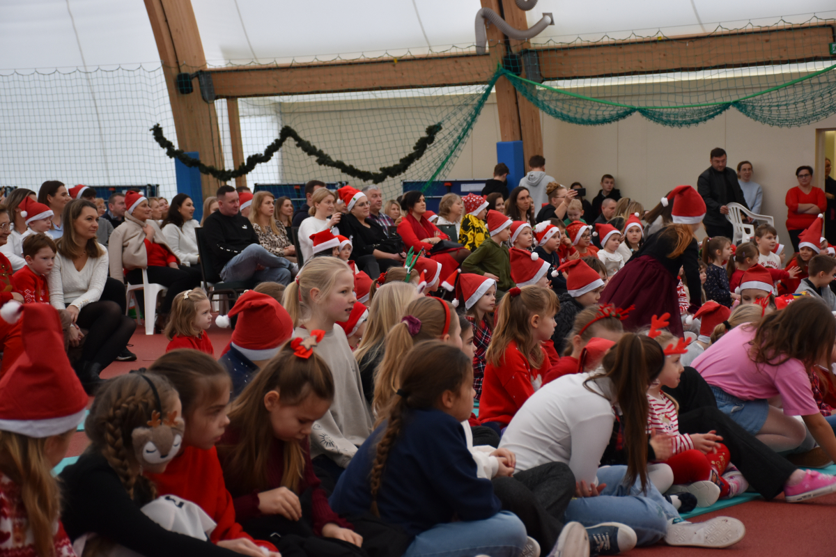 W niedzielę hala sportowa Olimpia w Starym Lubotyniu zamieniła się w prawdziwą krainę Świętego Mikołaja. Od pierwszych chwil było jasne, że czeka nas wyjątkowy dzień – dzieci wbiegały do środka z błyskiem w oczach, rodzice z uśmiechem rozglądali się po udekorowanej hali, a świąteczna muzyka dopełniała atmosfery, wprowadzając wszystkich w klimat zbliżających się świąt.